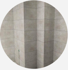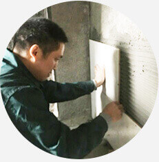 先將墻面拉毛、找平使用東方雨虹專用瓷磚粘貼劑。墻面與瓷磚面分別進行橫縱拉槽進行鋪貼有效的防止瓷磚脫落及空鼓